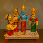 - Features Lord Rama with bow, Sita Mata, Lakshmana, and Hanuman in devotion